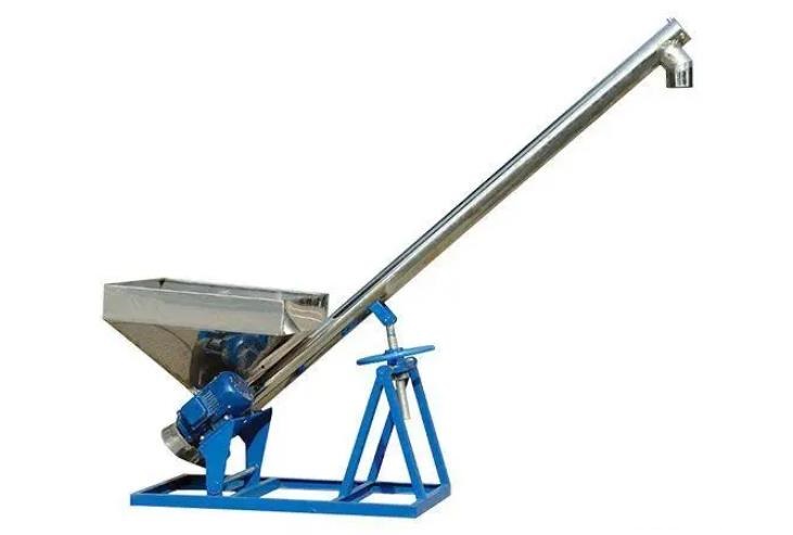 傾斜螺旋提升機是靠電機產生動力,帶動擺線減速機傳動到螺旋器,是一種利用螺旋旋轉使物料向前擠壓,同時使物料產生向前的推動,螺旋上料機從進料口進料經螺旋器強制性使物料輸送到出料口